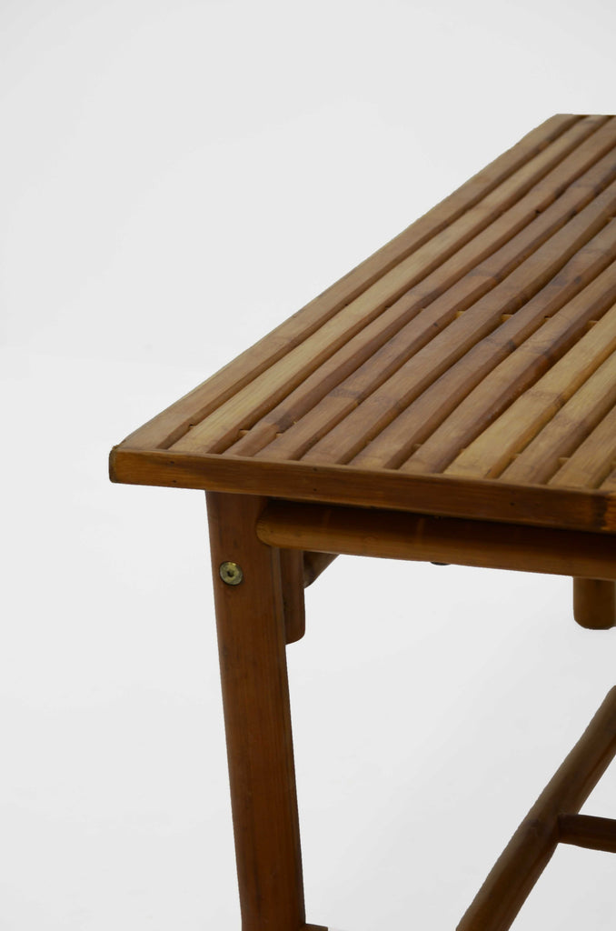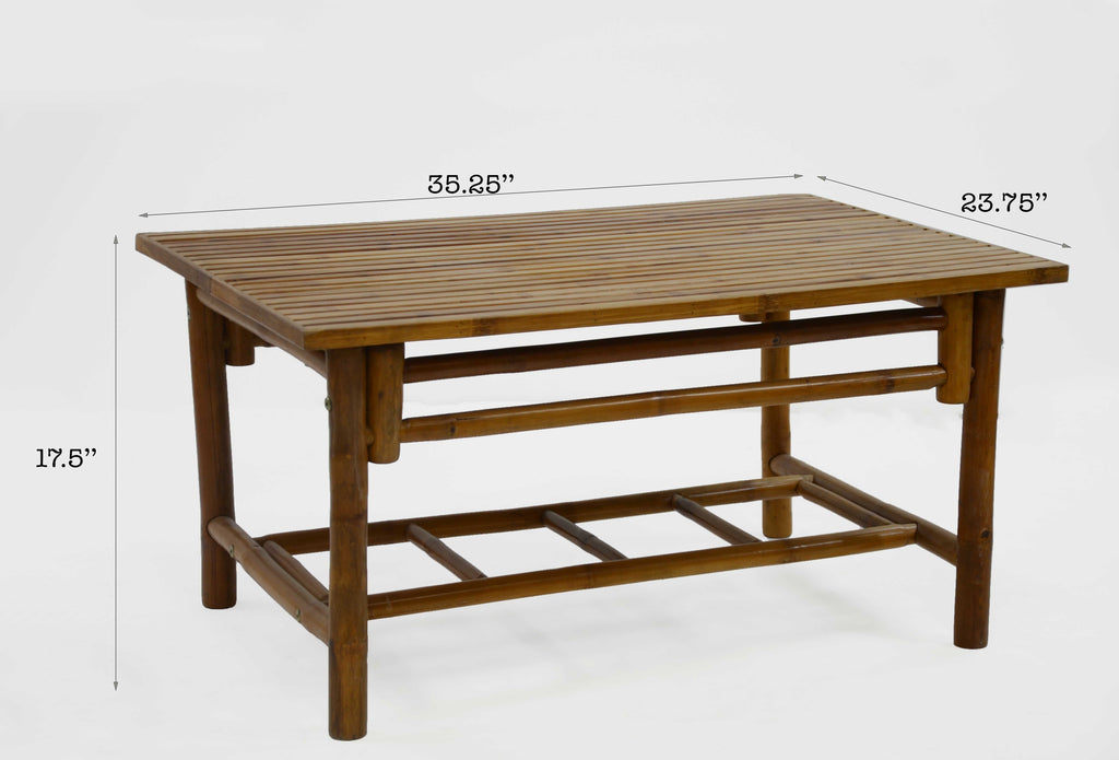 • This rectangular coffee table is made with eco-friendly bamboo that is durable and pleasing. The table is perfect for tea with your friends or eating breakfast. The base of the coffee table has a ladder-like design for you to place your floor cushions or more.