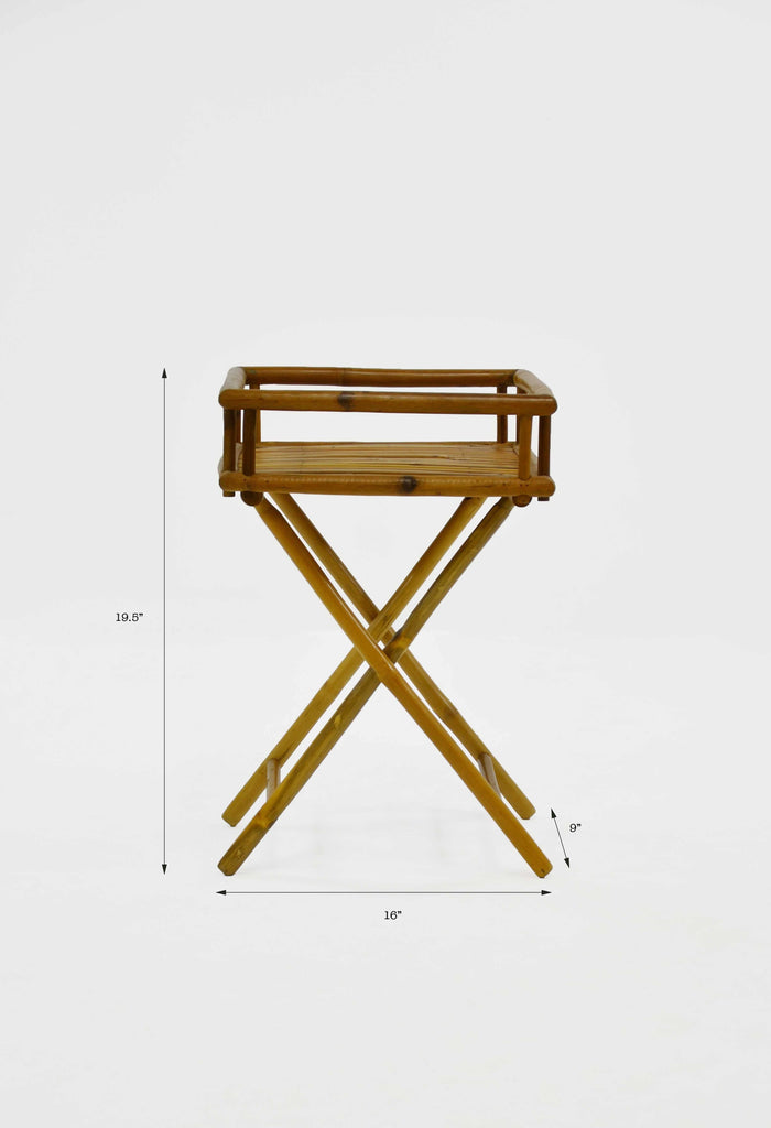- Nothing brings you peace and a calm mind more than bamboo. The Vintage Bamboo folding Table is made from eco-friendly bamboo, making it both durable and pleasing. This piece is lightweight and flexible, which is easy to fold up when not in use and be put away to free up your space.