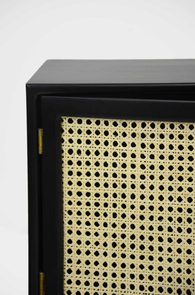 - The Romona Media Console is a modern design take on traditional looks. The console is a combination of ash wood and woven cane. The console has three drawers that are just perfect for your books, accessories, candle, pictures, and more. The console will provide you timeless looks in your home with its four sturdy diagonal footboards.